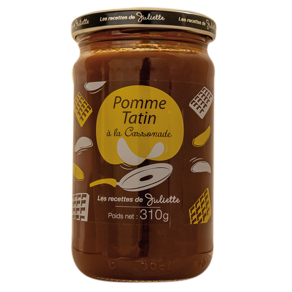 Composition : Pommes, cassonade 24%, caramel (sucre, eau) 9.5%, miel, gélifiant : pectines, jus de citron concentré, huile